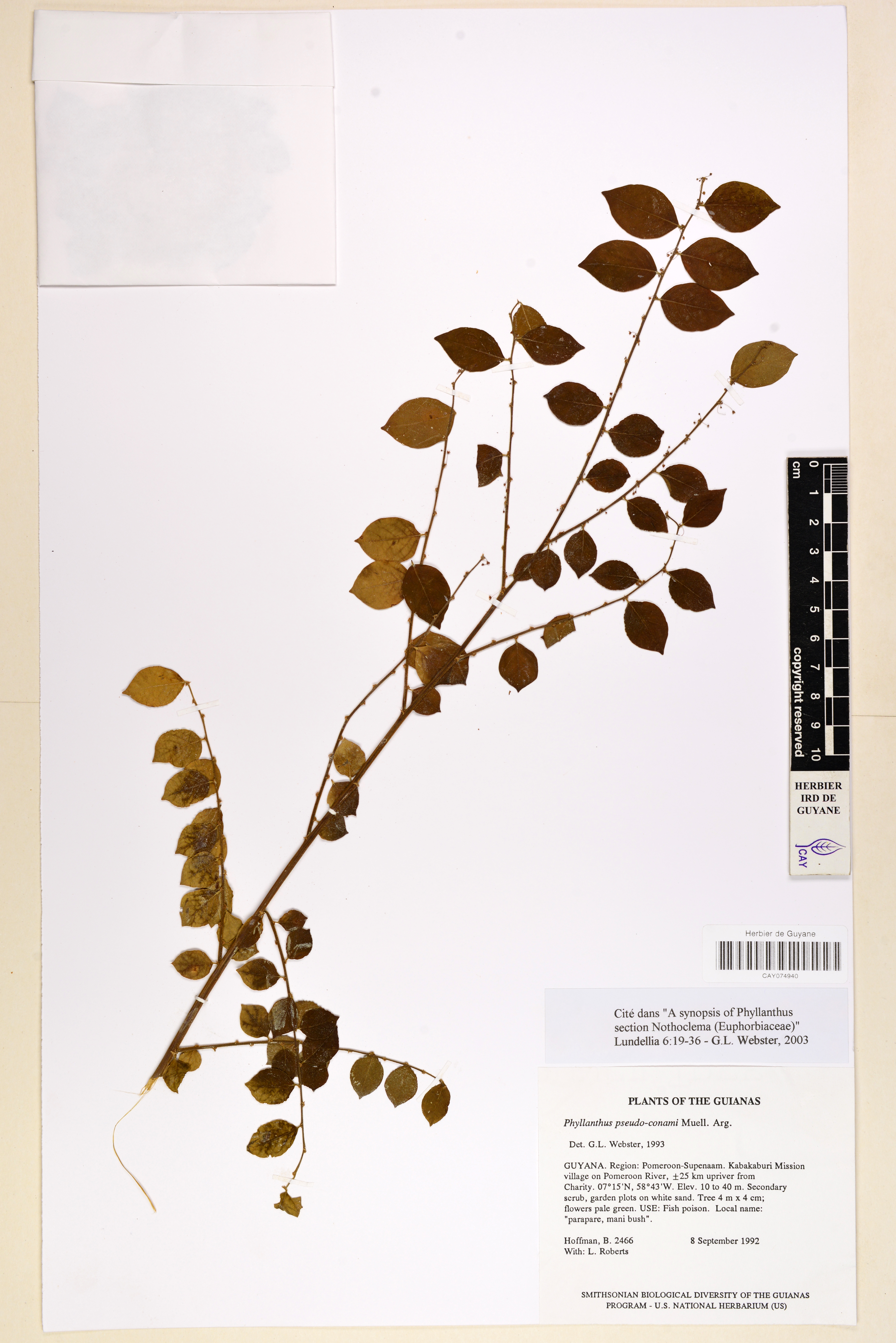 - Plantae Haeckel - Magnoliophyta Cronquist, Takht. & W.Zimm. ex Reveal - Euphorbiaceae Juss. - Phyllanthus L. - Phyllanthus pseudo-conami Müll.Arg.