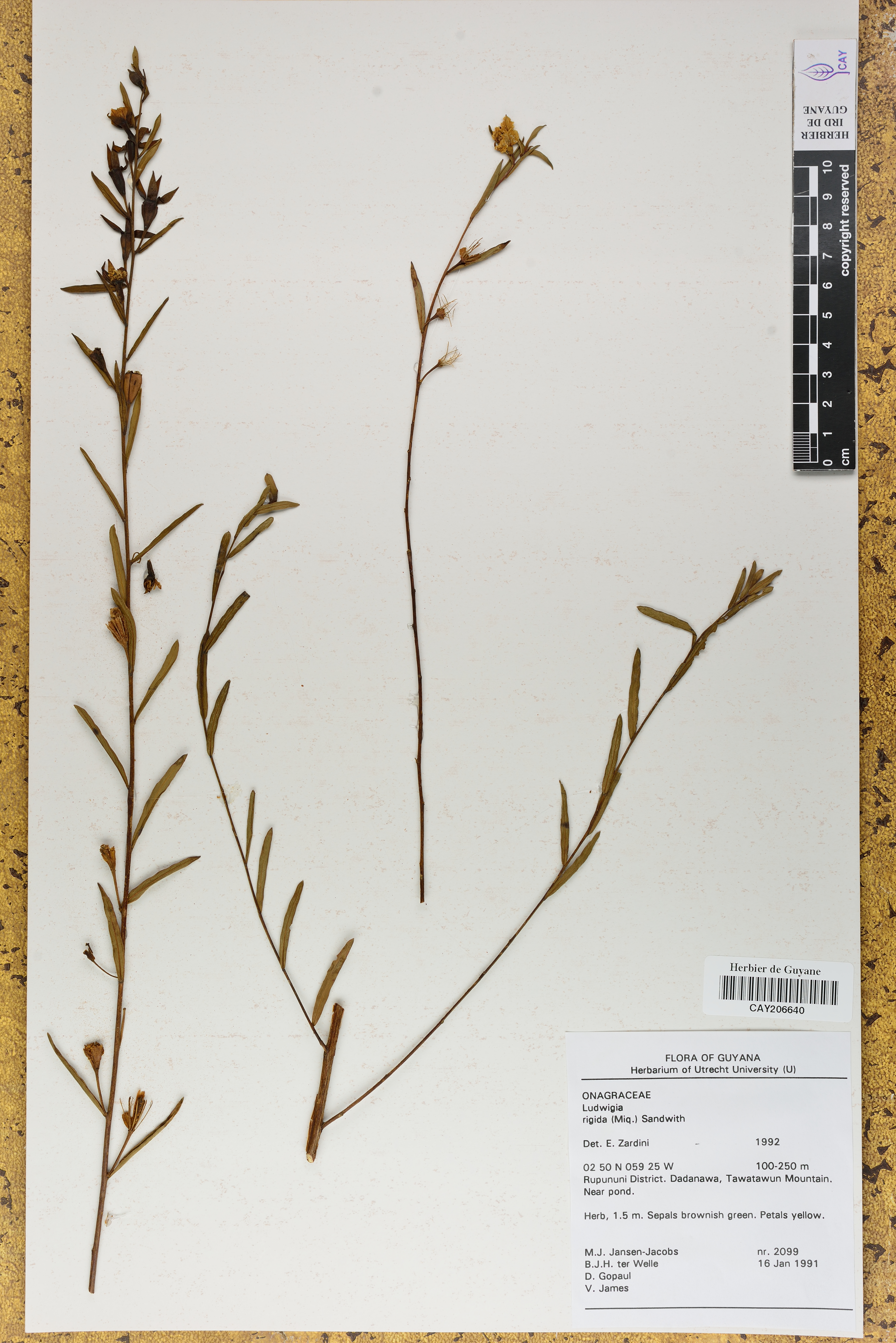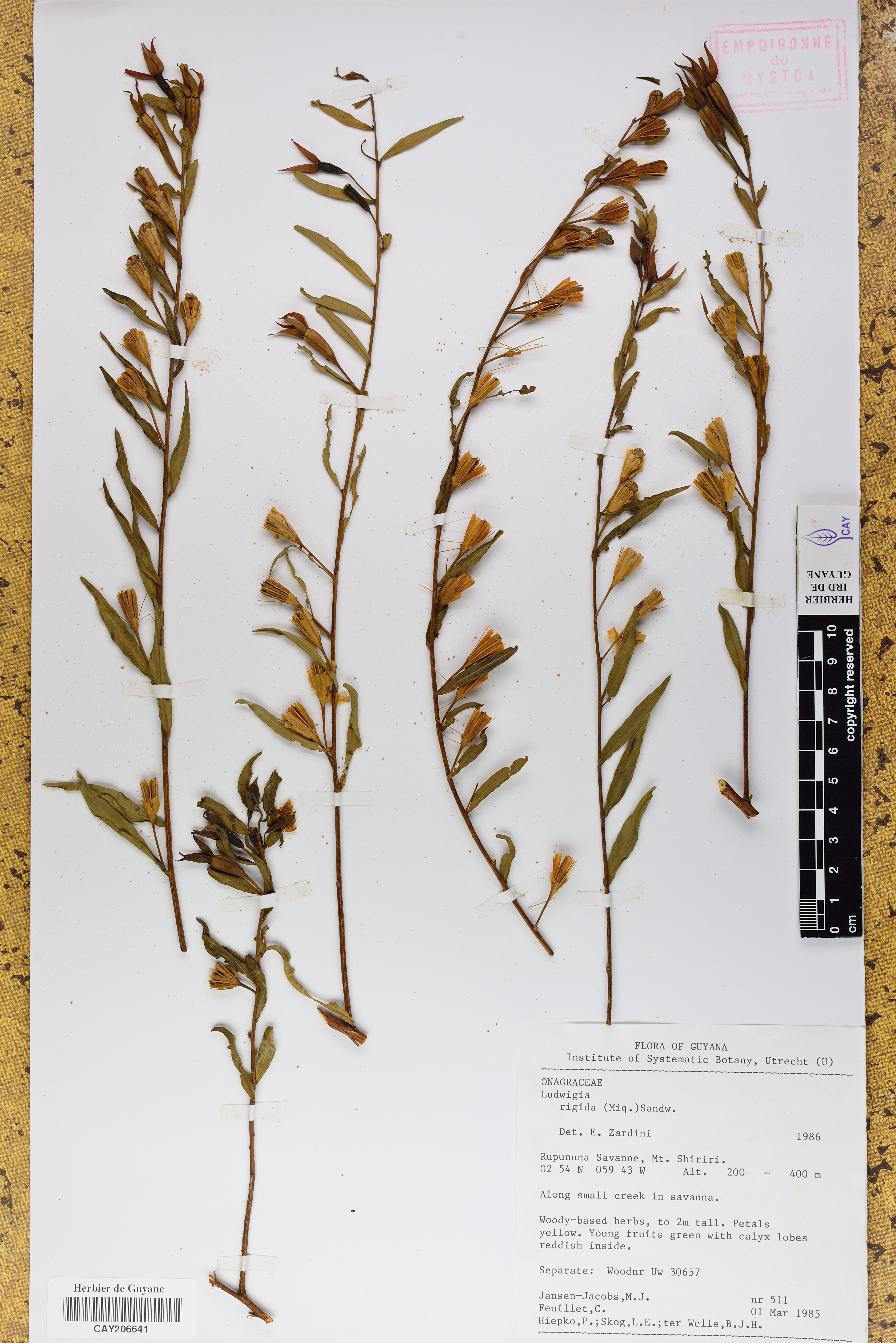 - Plantae Haeckel - Magnoliophyta Cronquist, Takht. & W.Zimm. ex Reveal - Onagraceae Juss. - Jussiaea L. - Jussiaea rigida Miq.