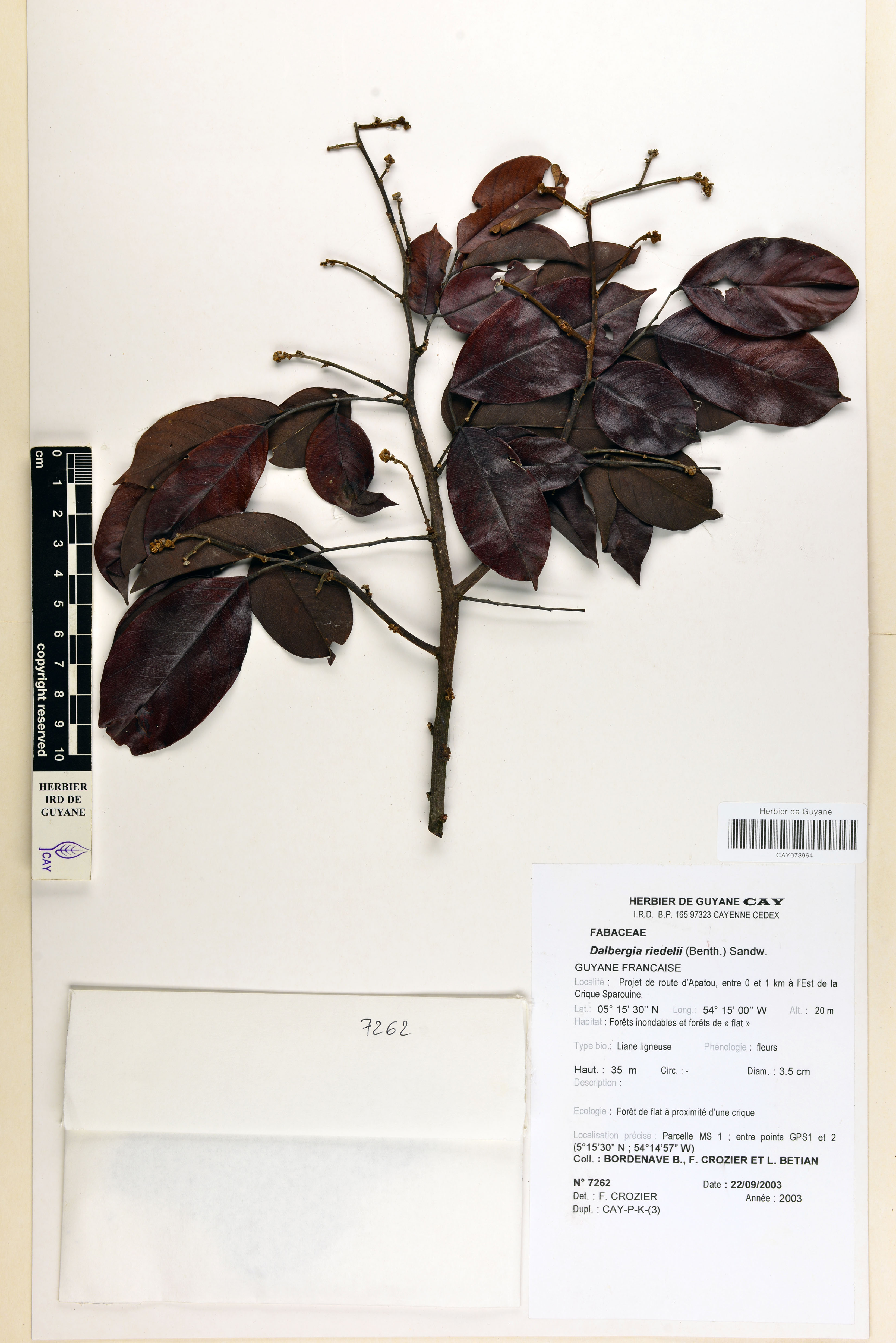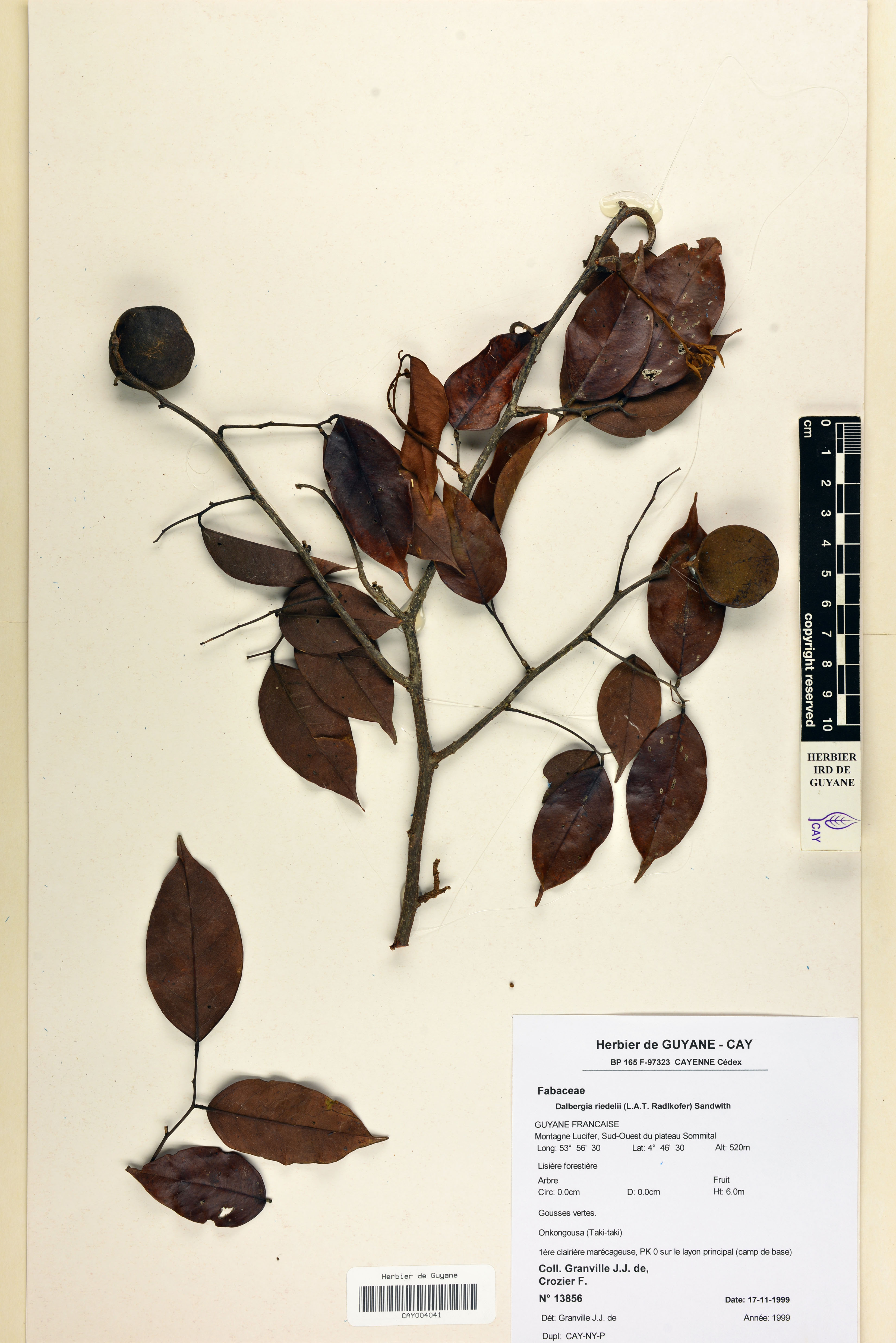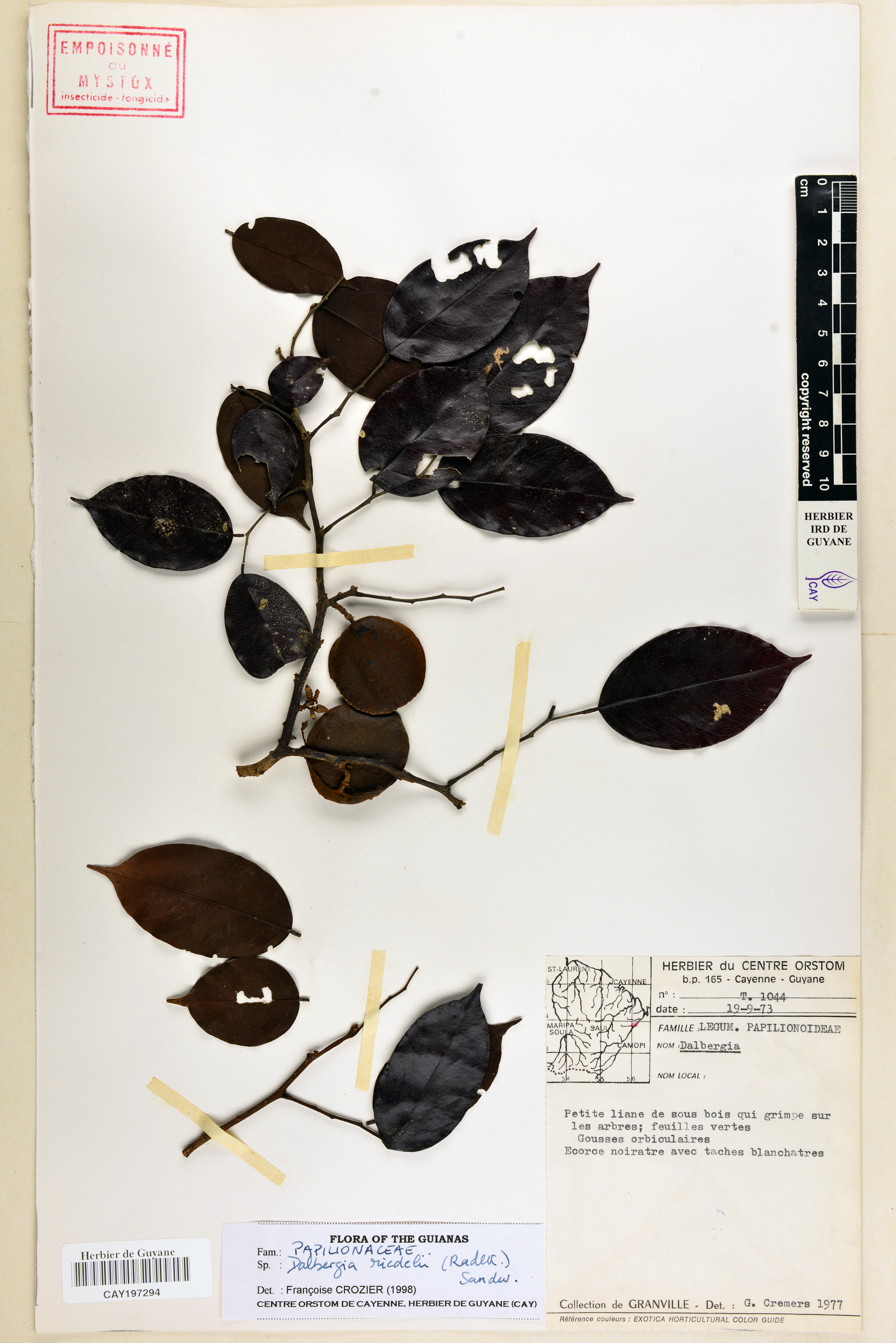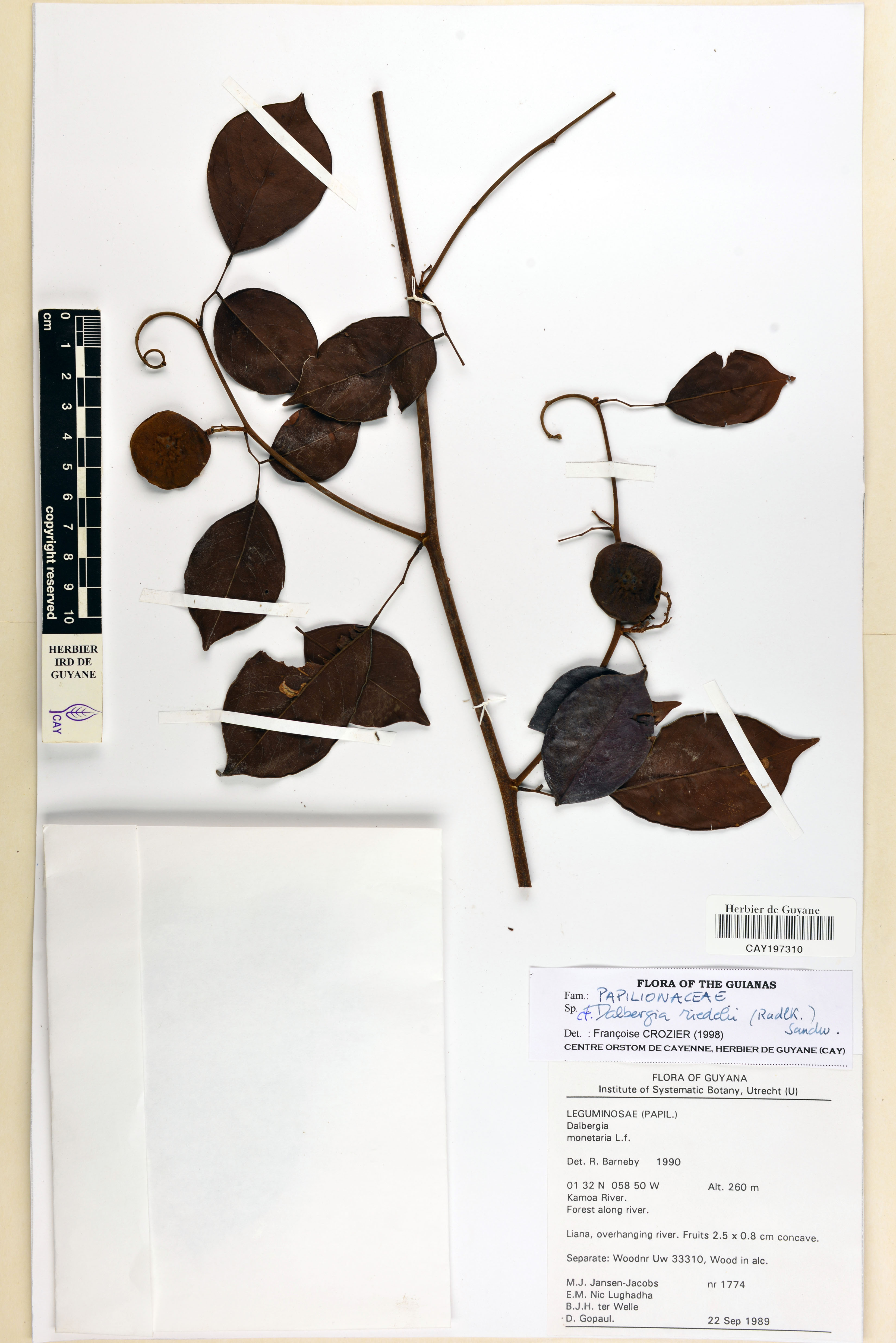 - Plantae Haeckel - Magnoliophyta Cronquist, Takht. & W.Zimm. ex Reveal - Papilionaceae Giseke - Dalbergia L.f. - Dalbergia pachycarpa Ducke