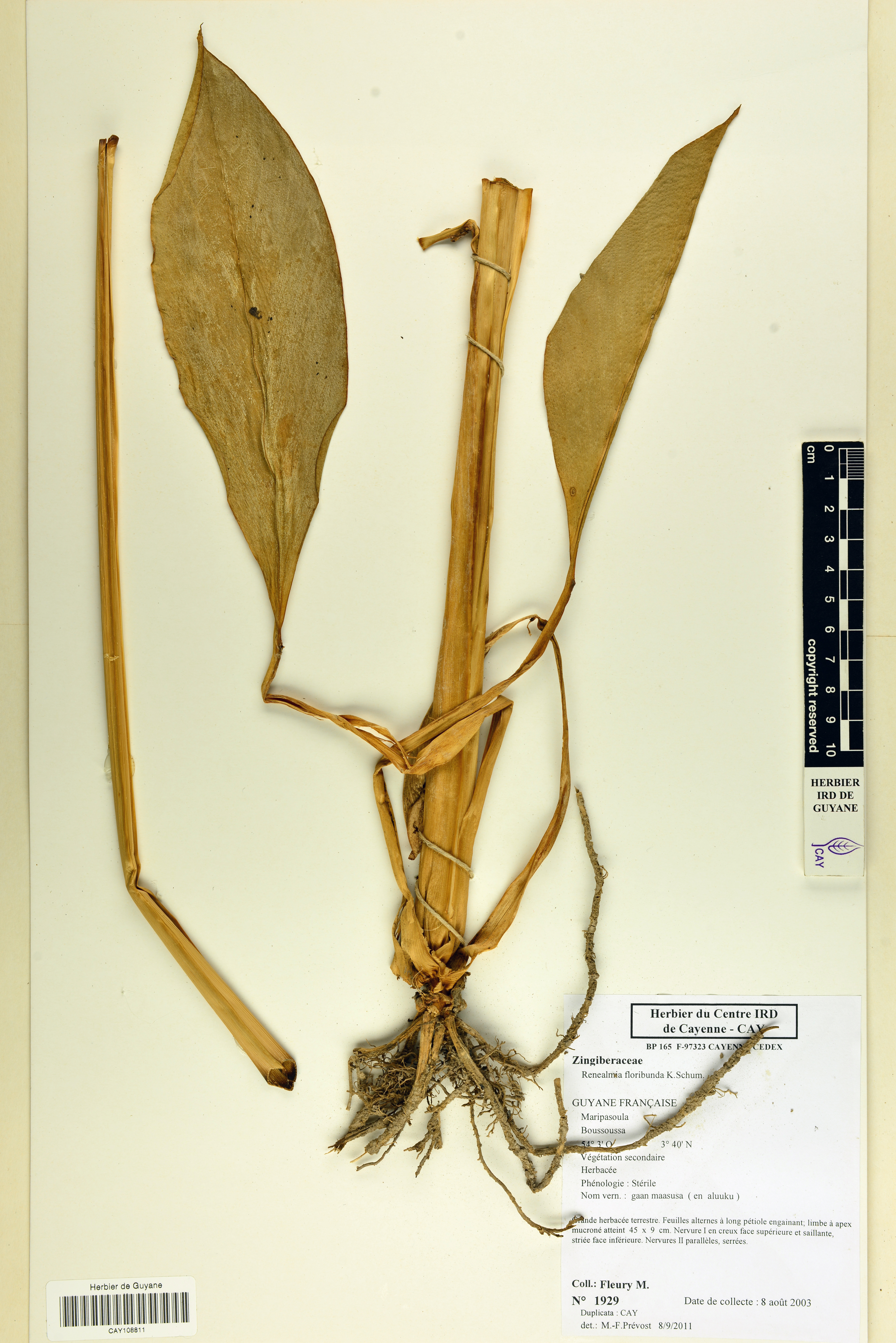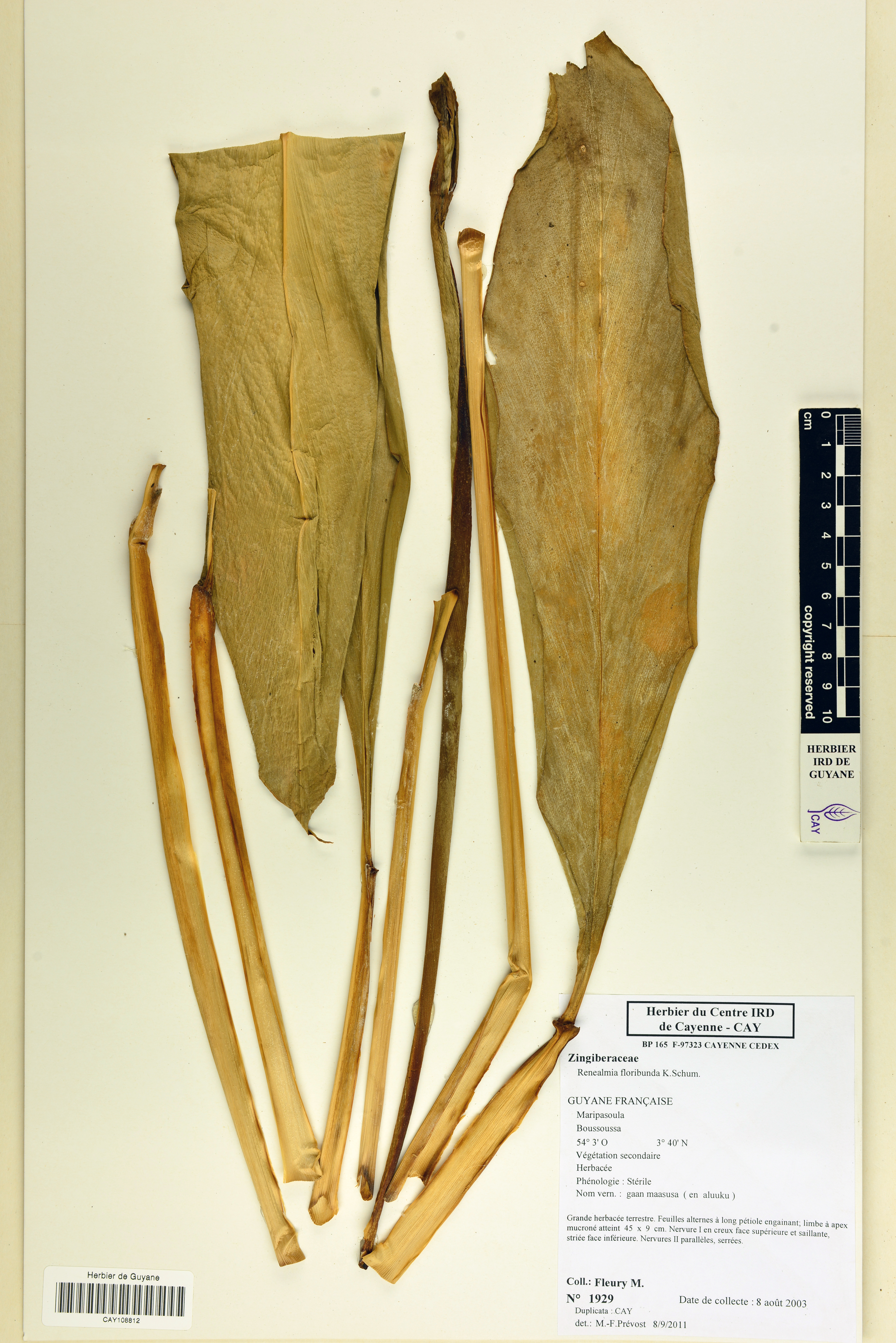 - Plantae Haeckel - Magnoliophyta Cronquist, Takht. & W.Zimm. ex Reveal - Zingiberaceae Martinov - Renealmia L.f. - Renealmia occidentalis (Sw.) Sweet - Renealmia occidentalis (Sw.) Sweet var. longipes Petersen