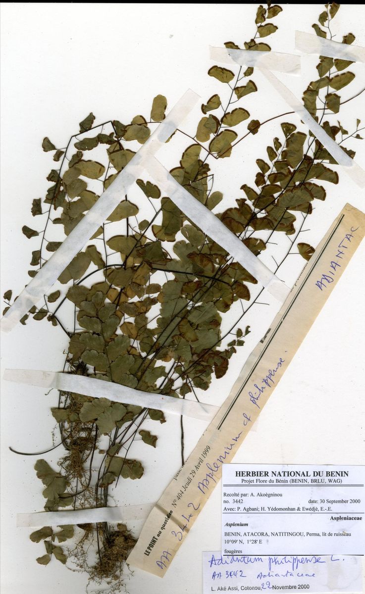 Herbier National du Bénin - Echantillons - Taxonomie - Adiantaceae