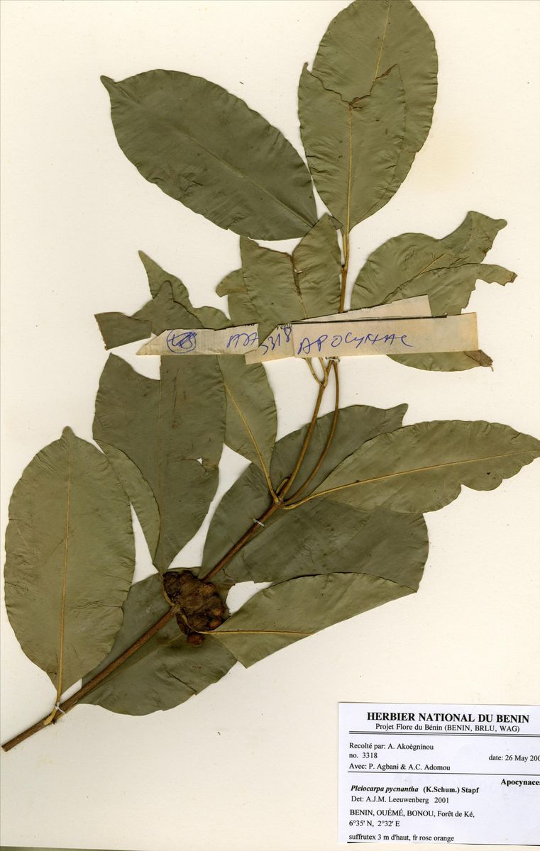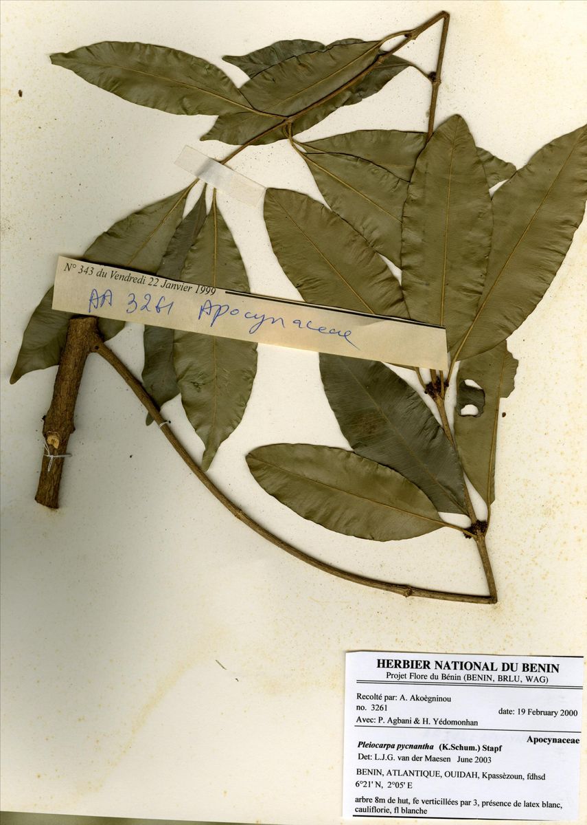 Herbier National du Bénin - Echantillons - Taxonomie - Pleiocarpa