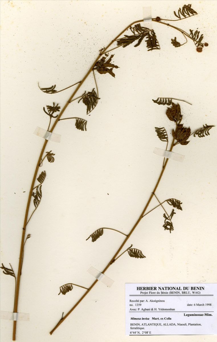 Herbier National du Bénin - Echantillons - Taxonomie - Mimosa invisa Mart. ex Colla