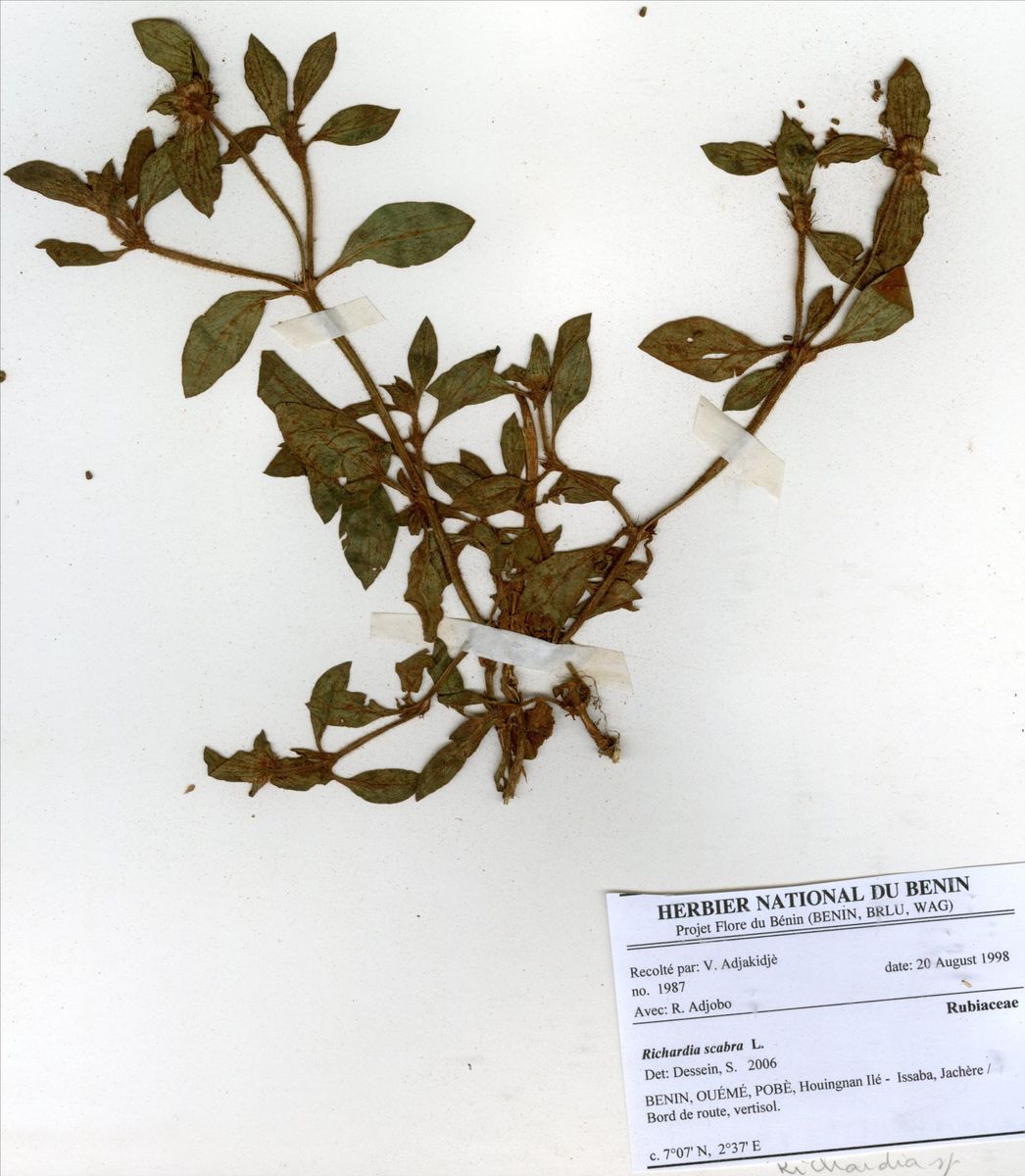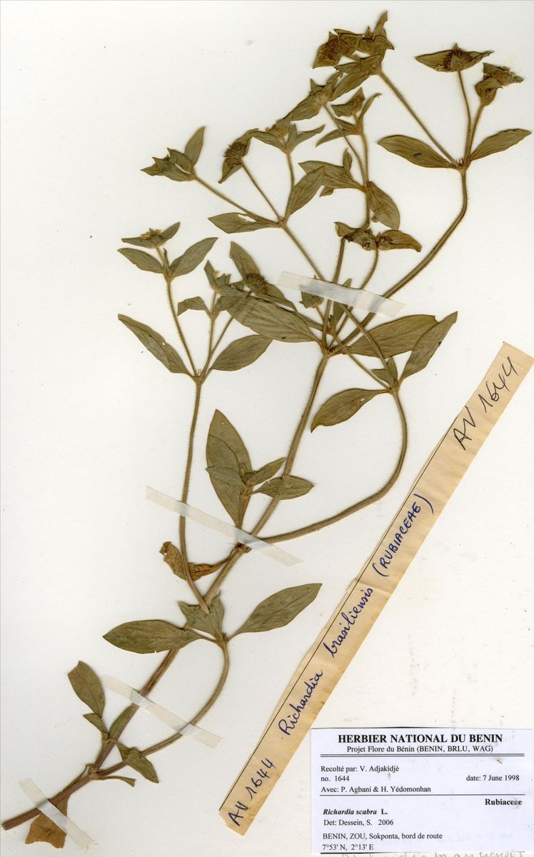 Herbier National du Bénin - Echantillons - Taxonomie - Richardia