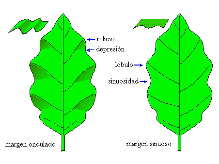 Dícese de un margen entero, no cortado, pero que presenta una alternancia de relieves y de depresiones, en donde la parte central del limbo permanece plana.